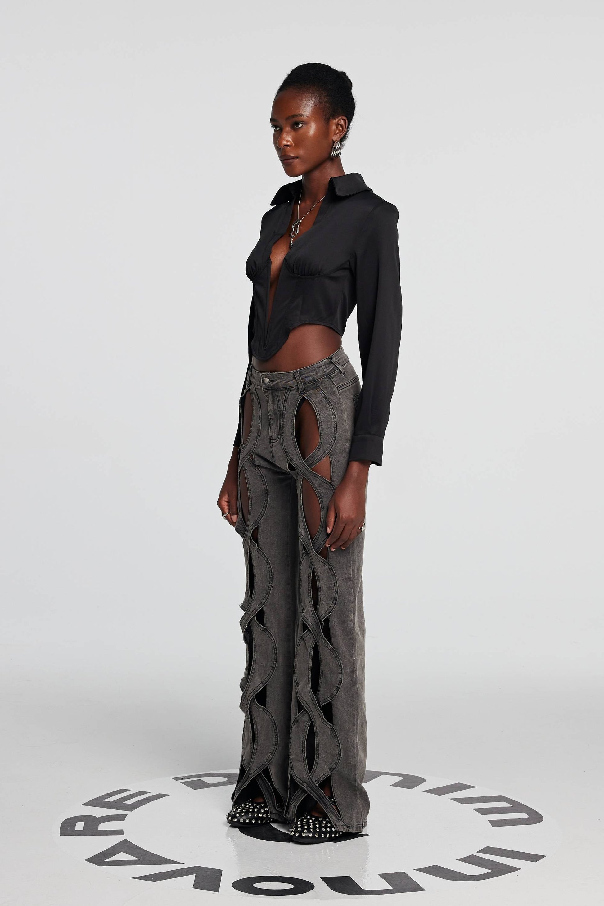 Invest in comfort and style with our Abigail Hollow Denim Jeans in Black. Designed with a hollow denim material for breathability and comfort, these jeans are the perfect combination of fashion and function. Elevate your wardrobe with the sleek black color and versatile design.