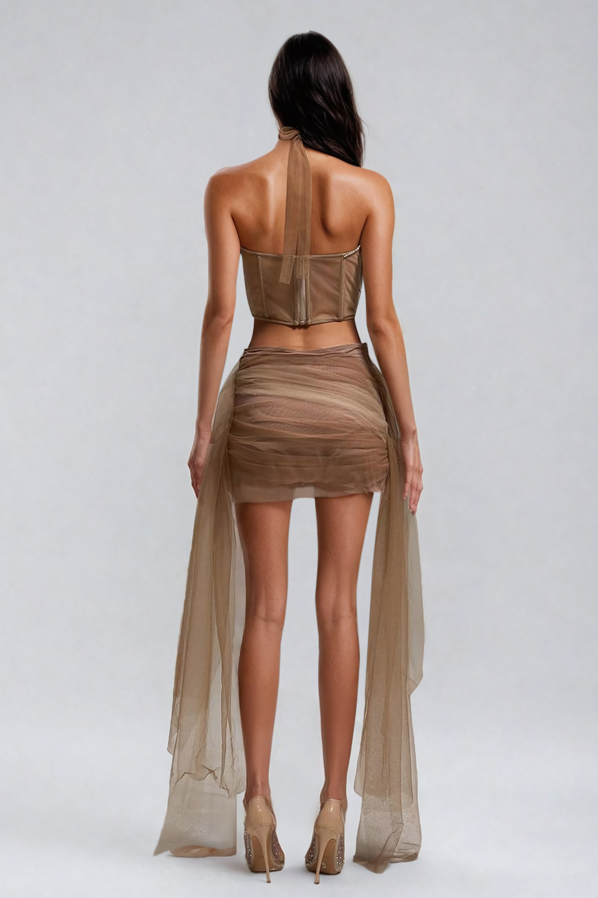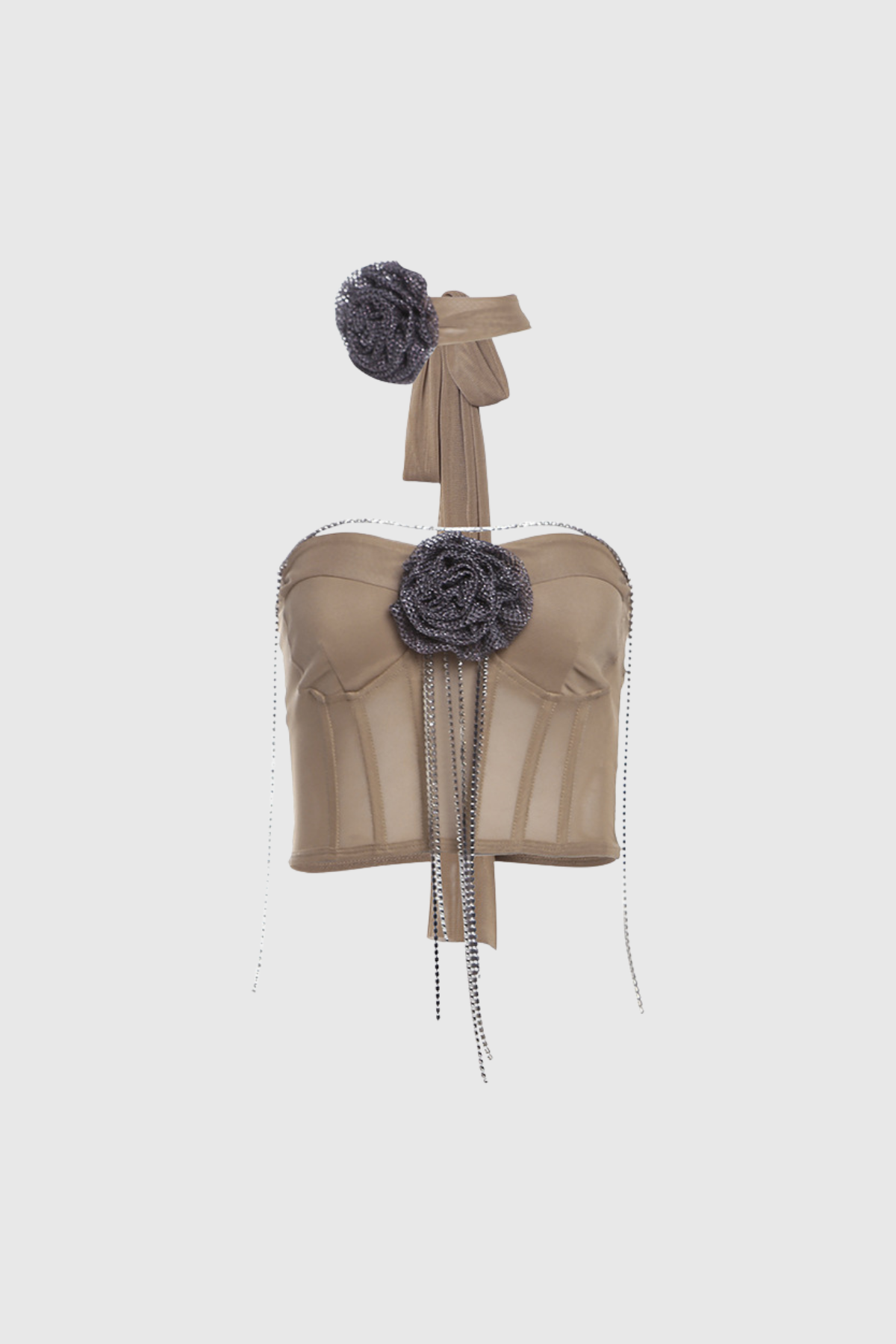 Expertly crafted Adria Rhinestone Flower Strapless Skirt Set. Featuring stunning rhinestone flower detailing and a comfortable strapless design, this skirt set is perfect for any occasion. Elevate your style and make a statement with this elegant and versatile set.