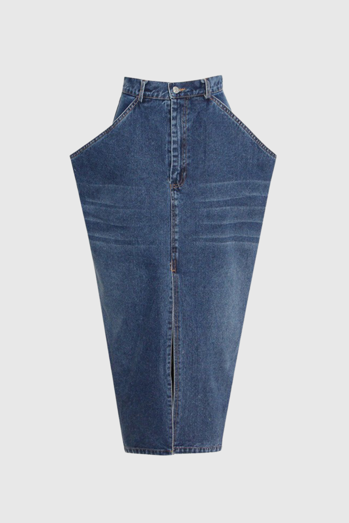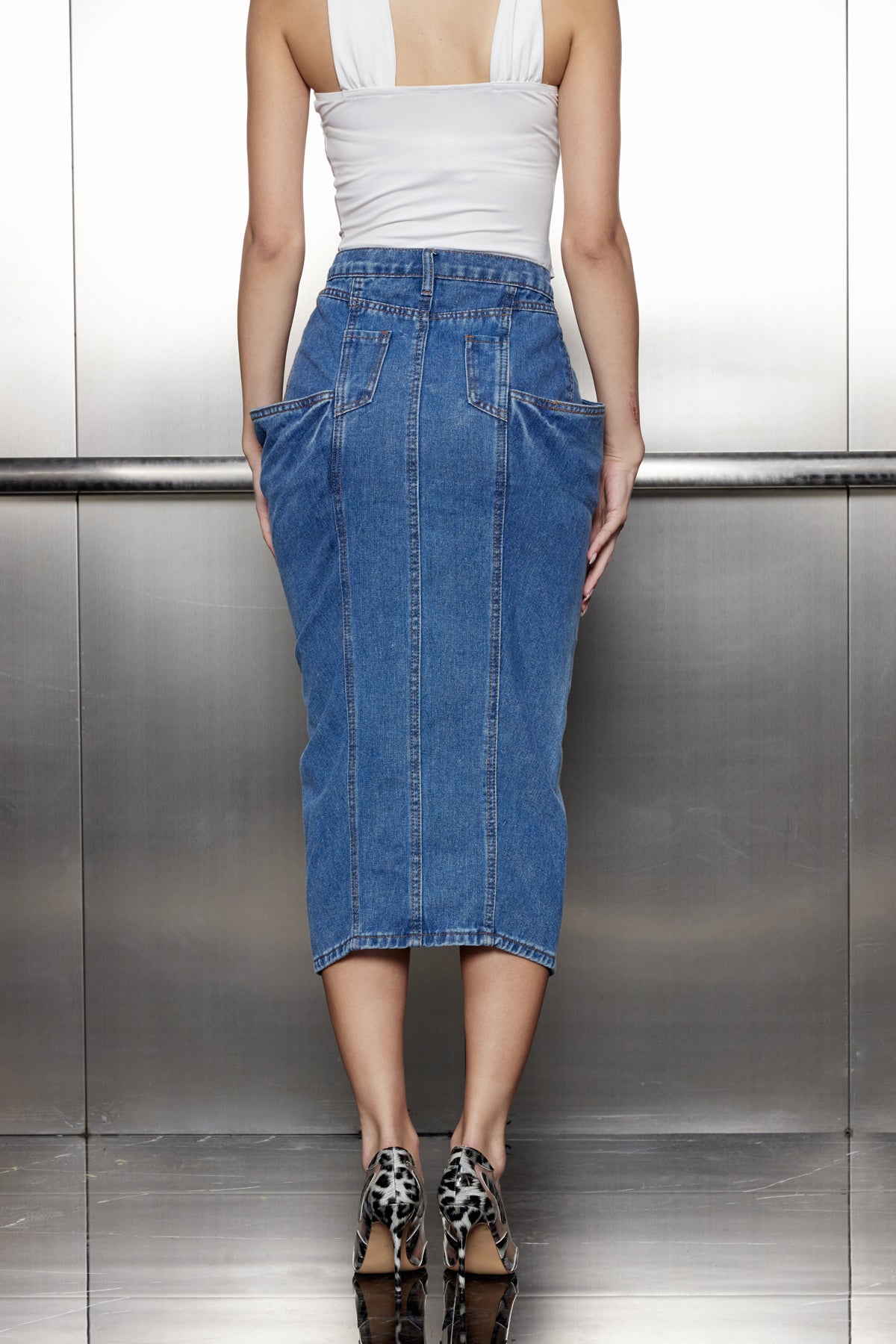 Experience modern style with the Amabilis Asymmetric Split Denim Skirt. Made from high-quality denim, this skirt features an asymmetric split design for a unique and contemporary look. Its durable and versatile material makes it perfect for everyday wear, giving you both comfort and fashion in one piece. Upgrade your wardrobe today with this must-have skirt.