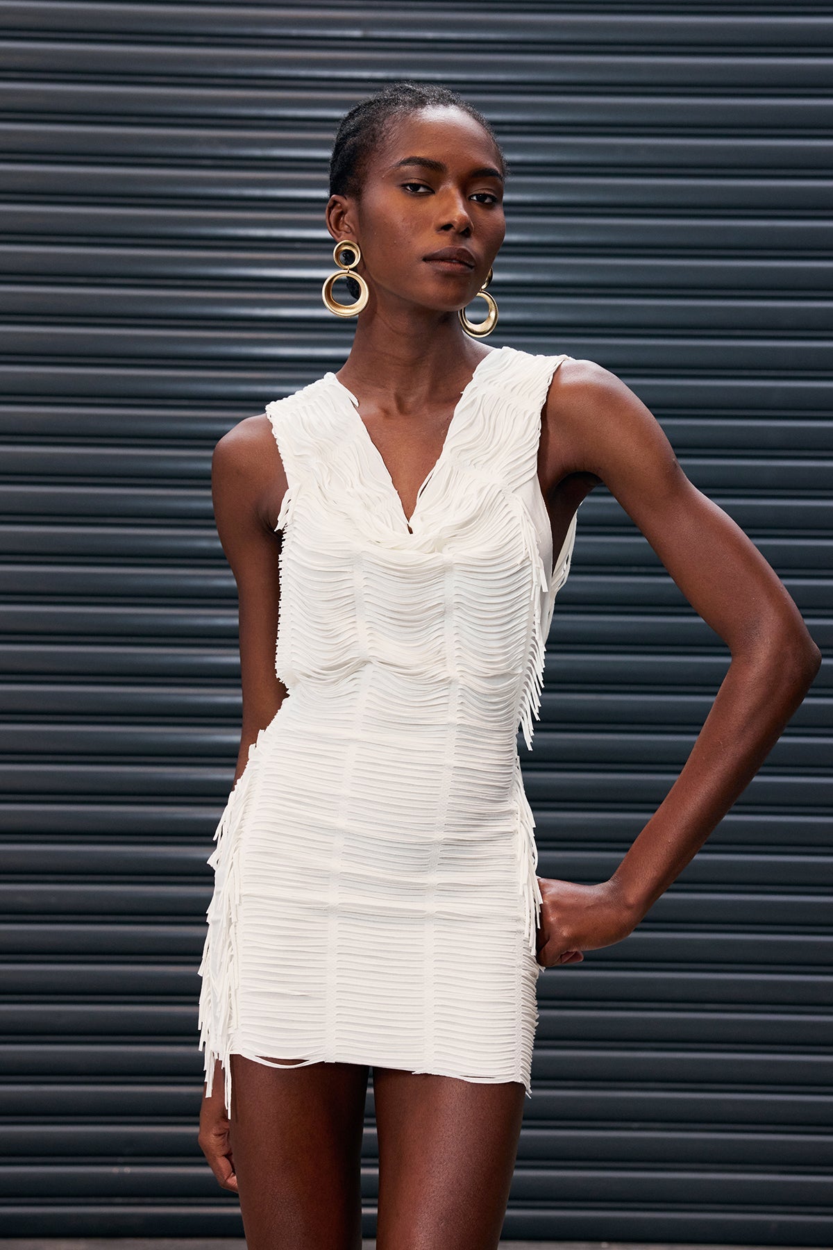 Anusha Fringe Hooded Backless Mini Dress
