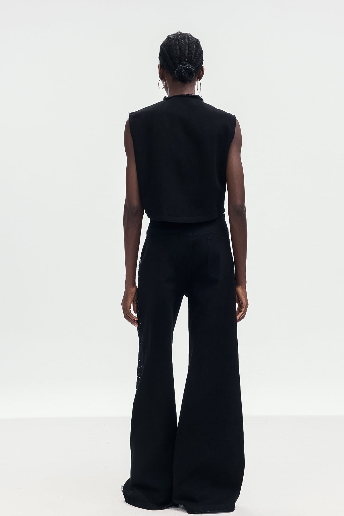 Discover the perfect blend of style and comfort with the Beat Rhinestone Cutout Love Denim Pants Set. Made with high-quality denim fabric, this set features stunning rhinestone detailing and a unique cutout design, adding a touch of glamour to any outfit. Elevate your wardrobe with this must-have set.