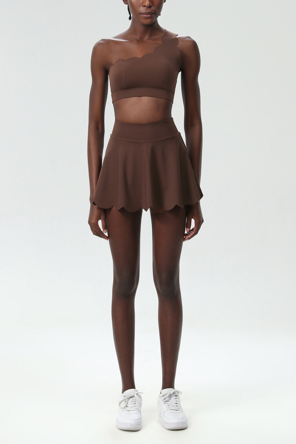 Belah One Shouder Wave Ruffle Skirt Set In Deep Purple