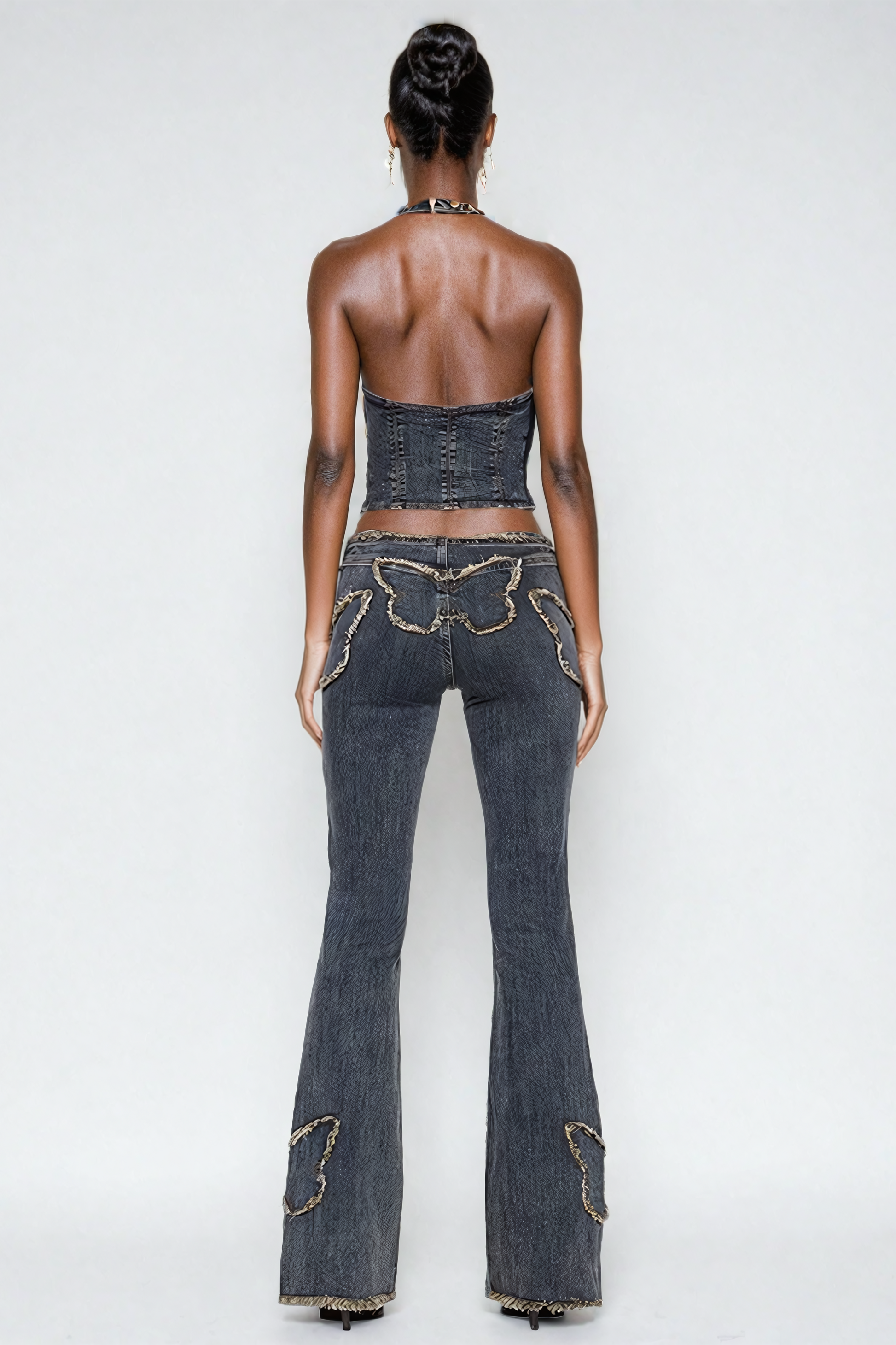 Introducing the Belinda Butterfly Denim Jeans, a durable and stylish addition to your wardrobe. Made with high-quality denim, these jeans offer superior comfort and a flattering fit. With beautiful butterfly embroidery details, these jeans are sure to make a statement. Upgrade your casual look with these must-have jeans.
