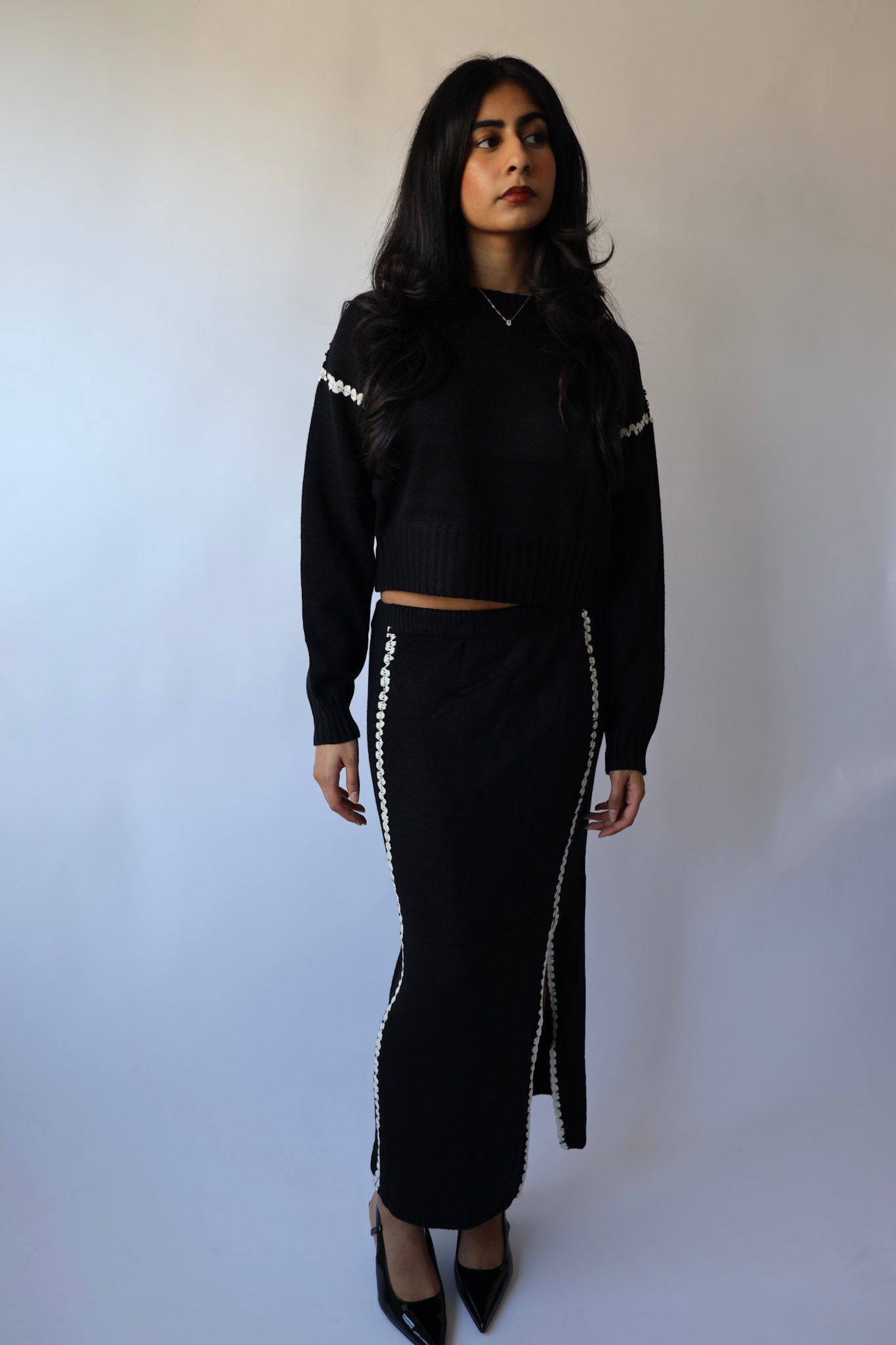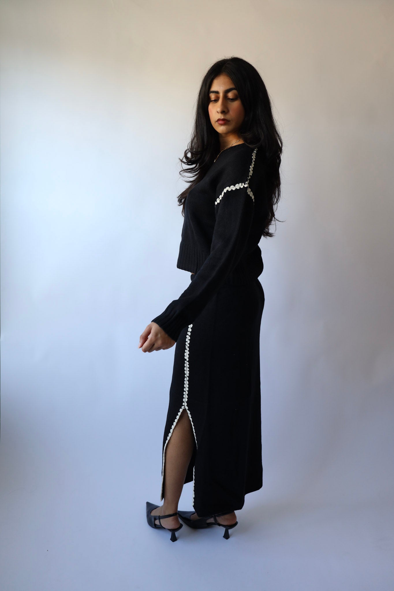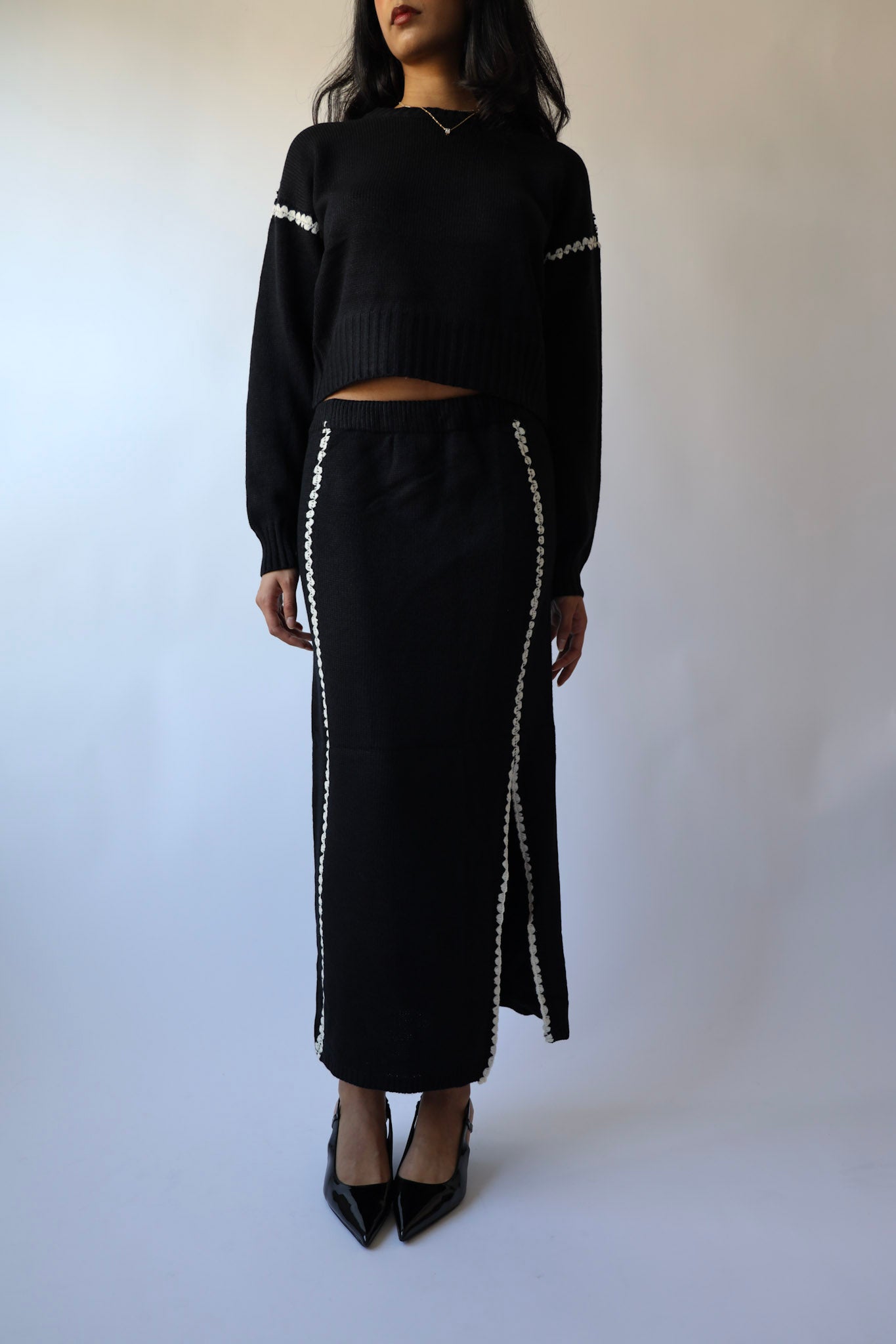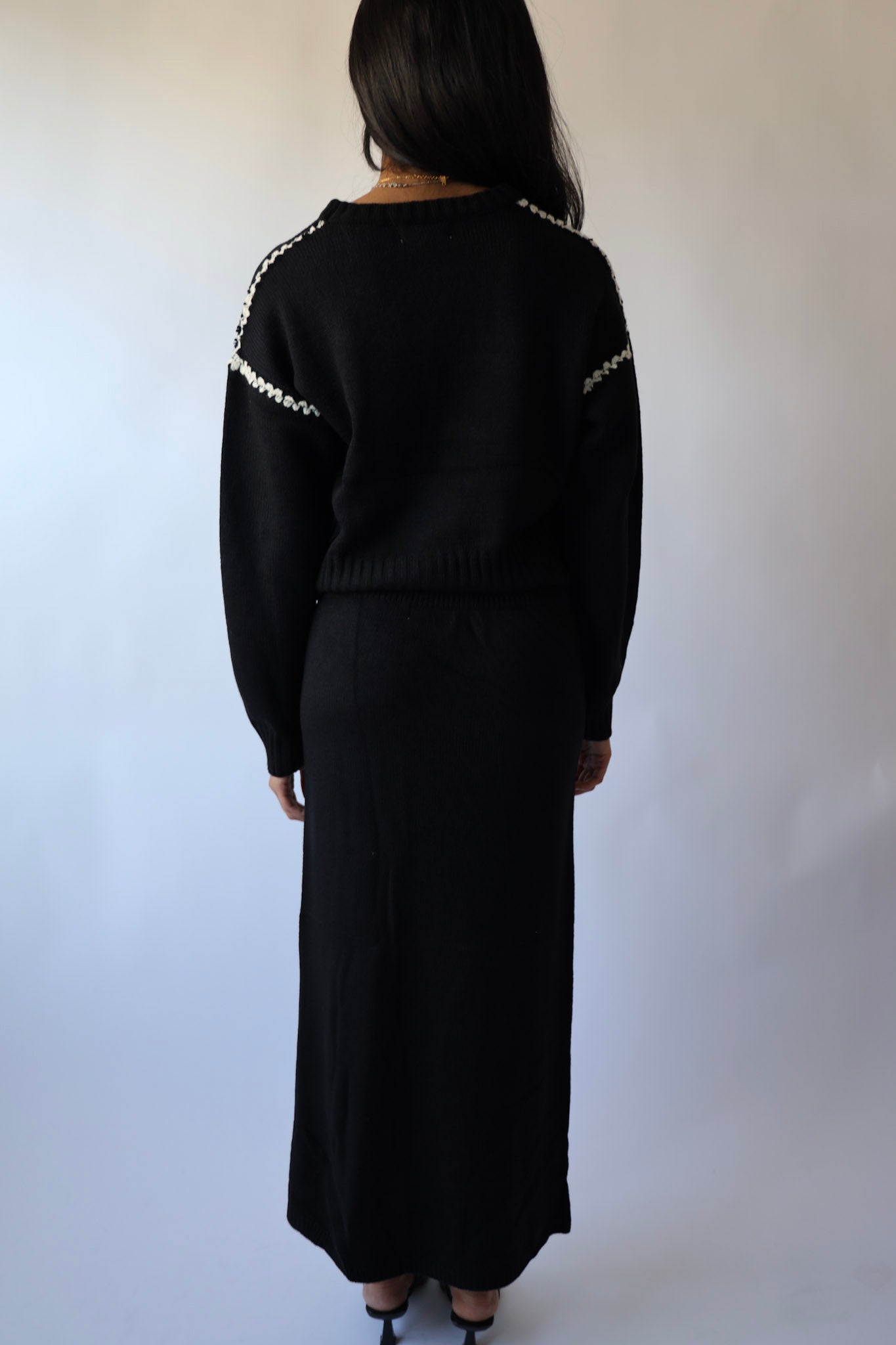 Contrast Stitch Knit Sweater and Long Skirt Set (Sold as a Set)