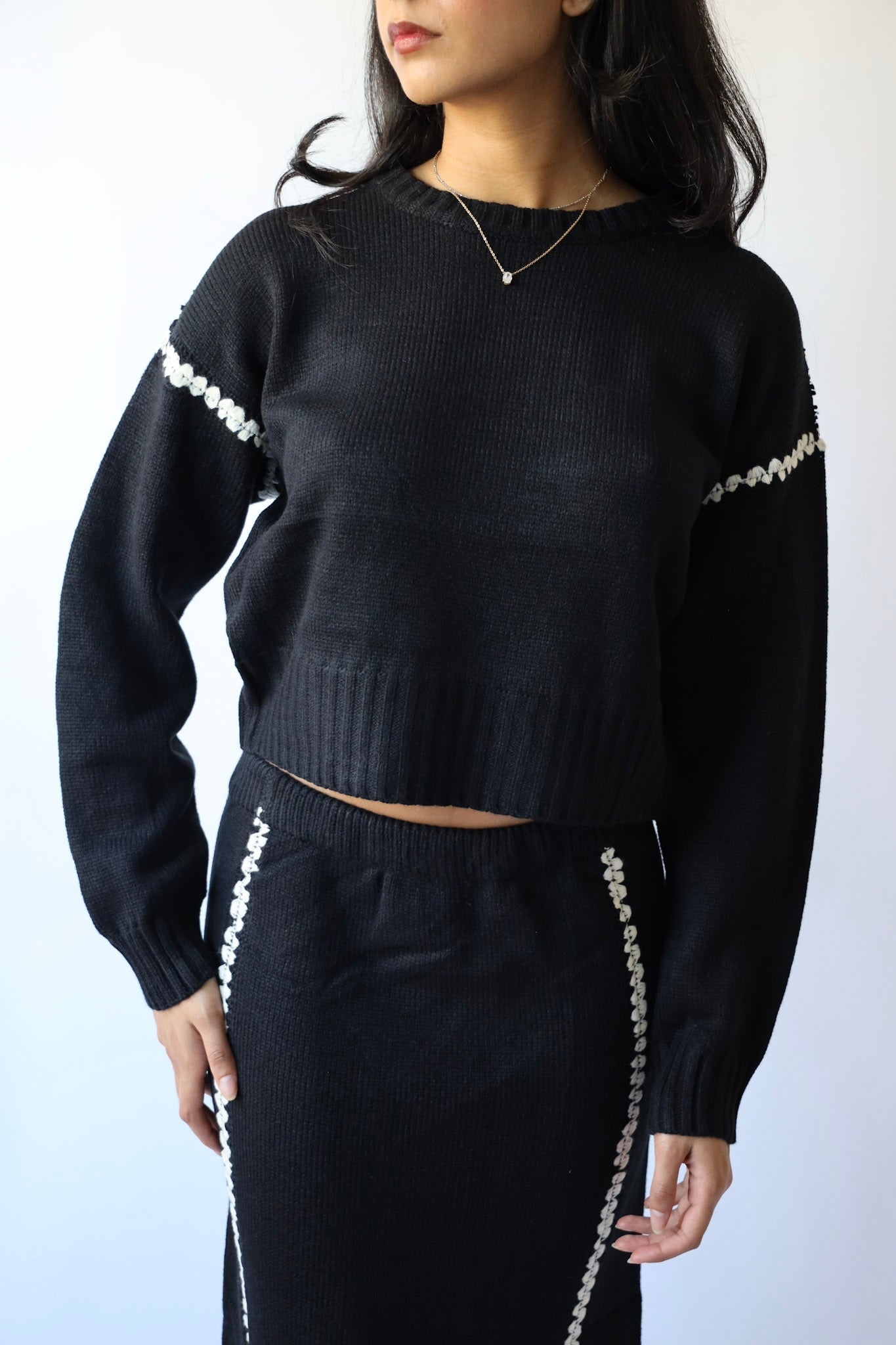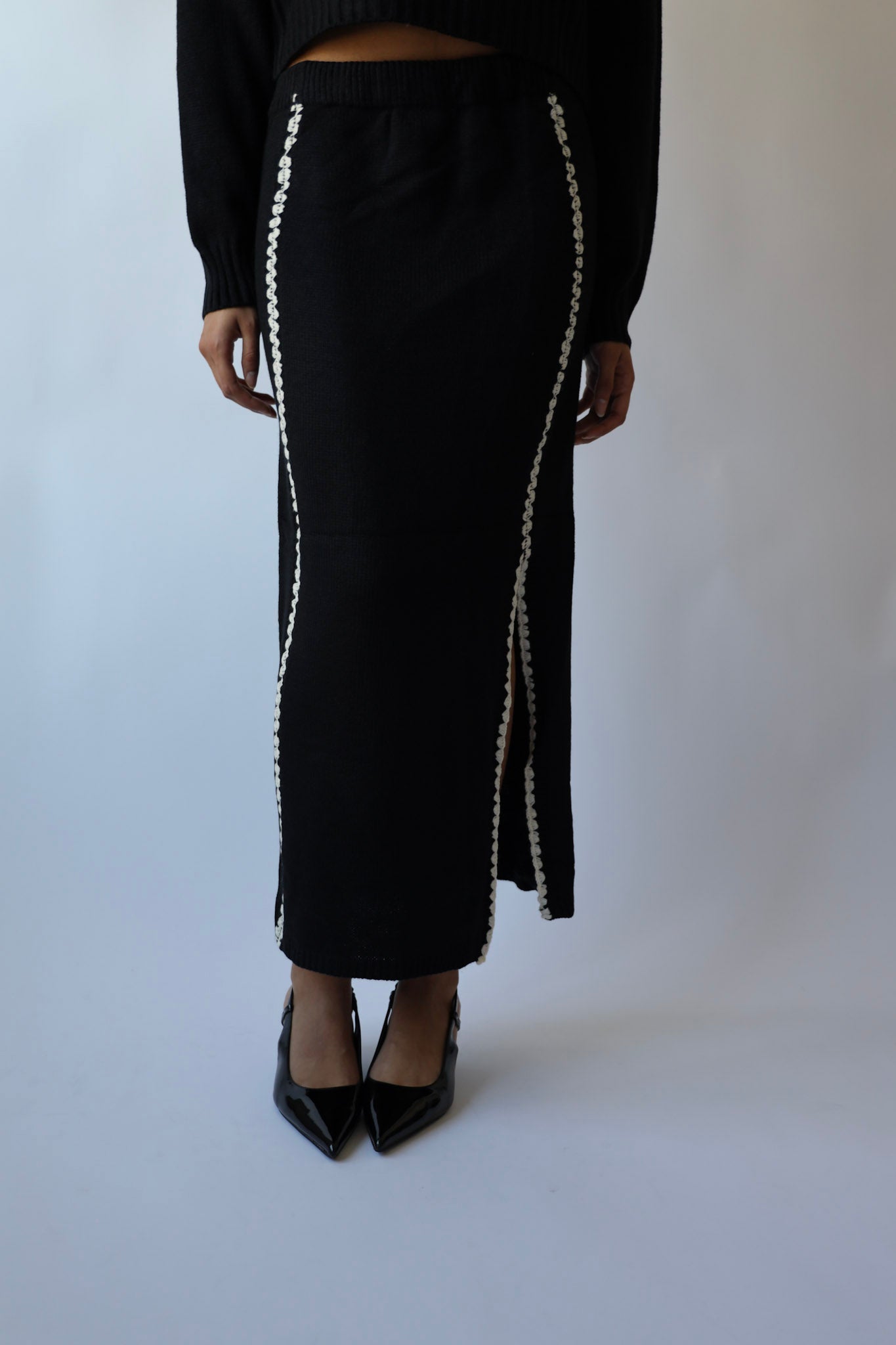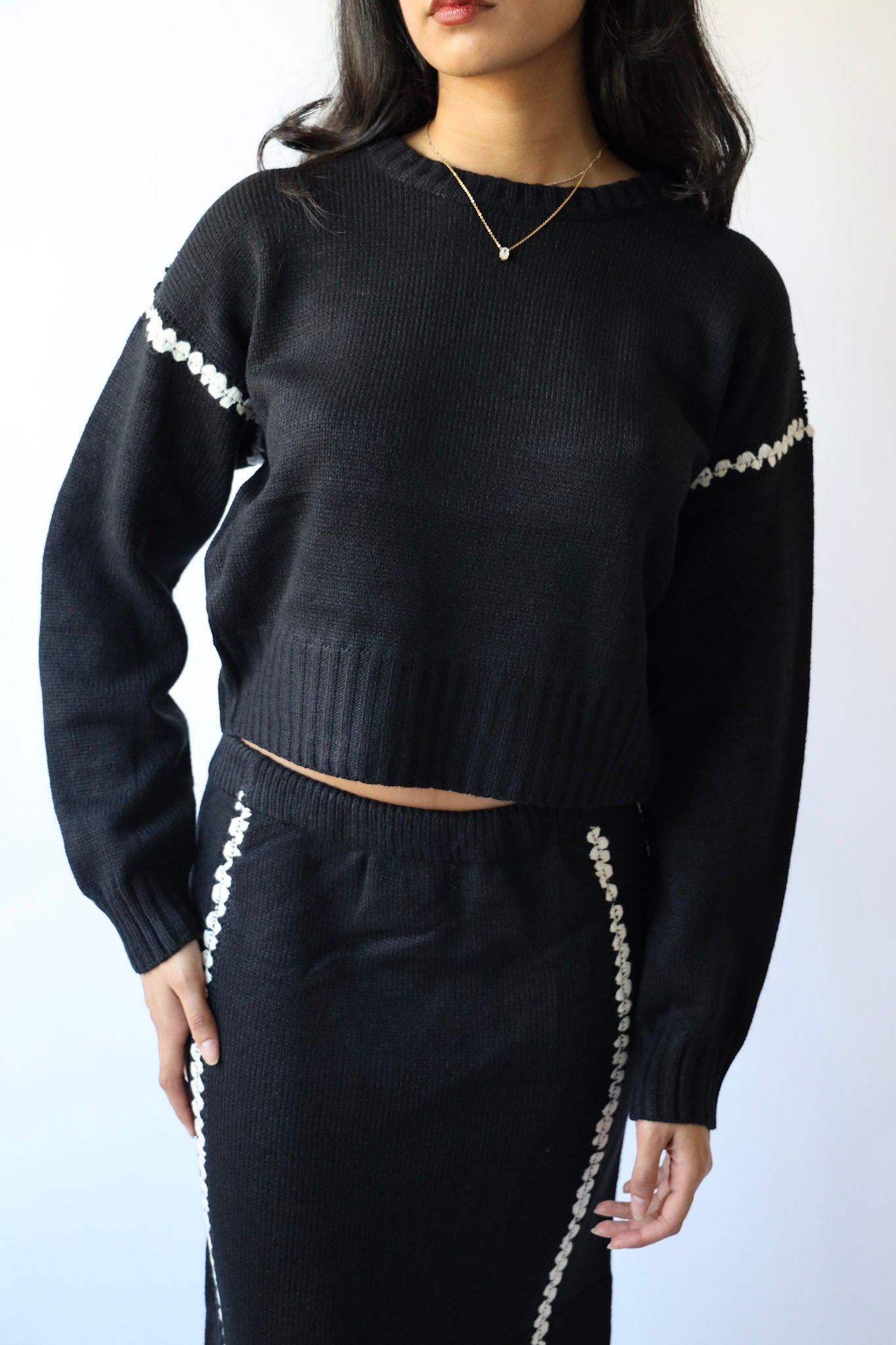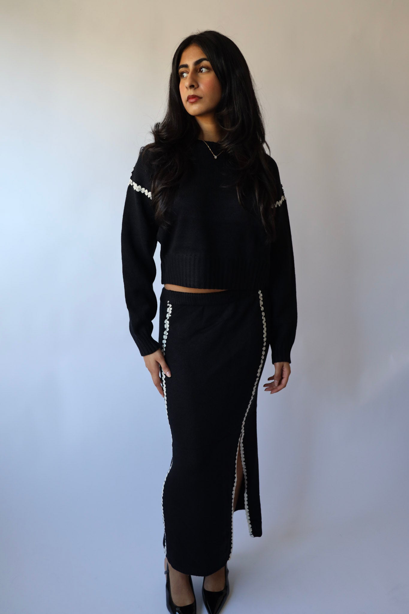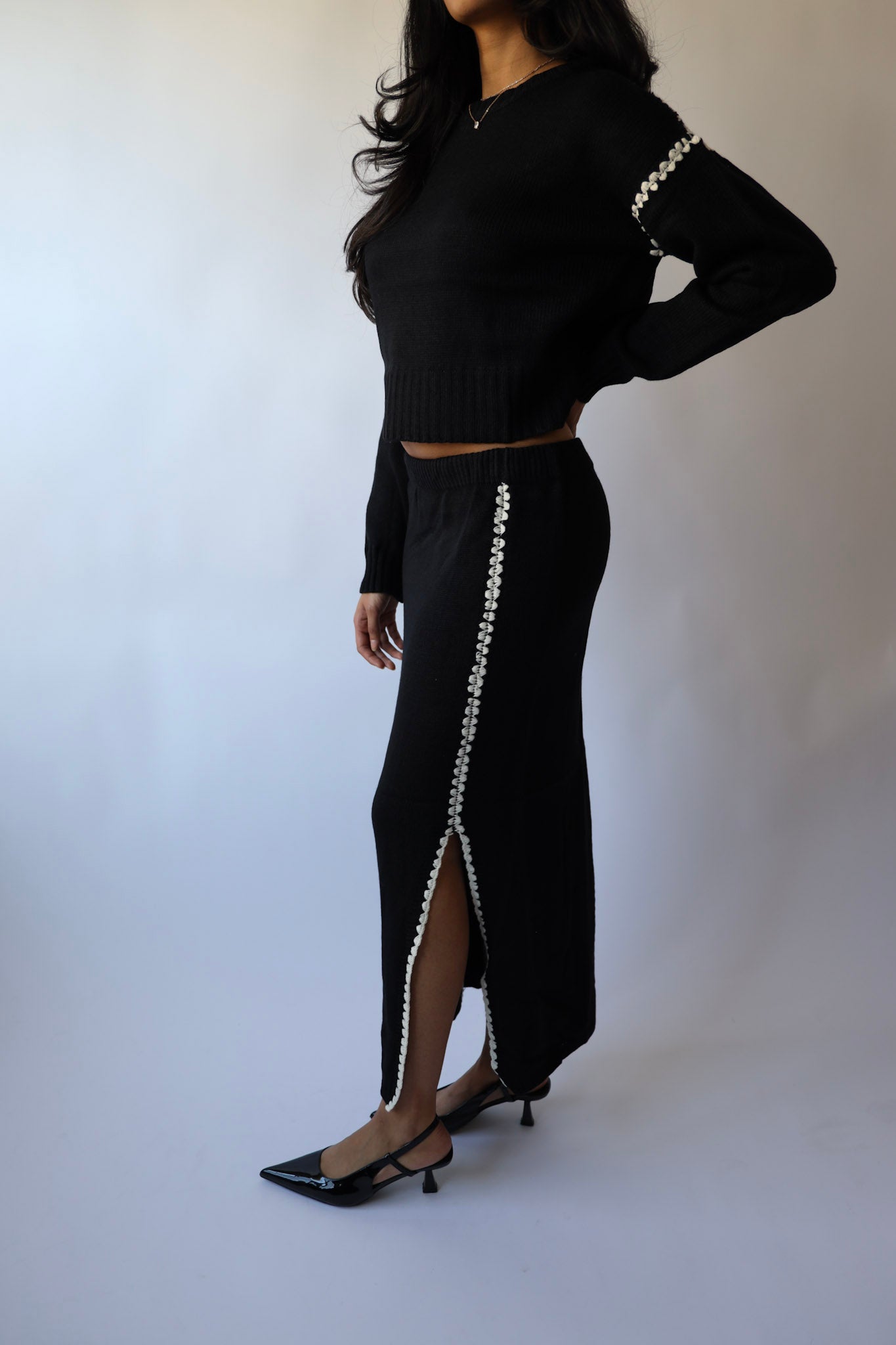 Contrast Stitch Knit Sweater and Long Skirt Set (Sold as a Set)