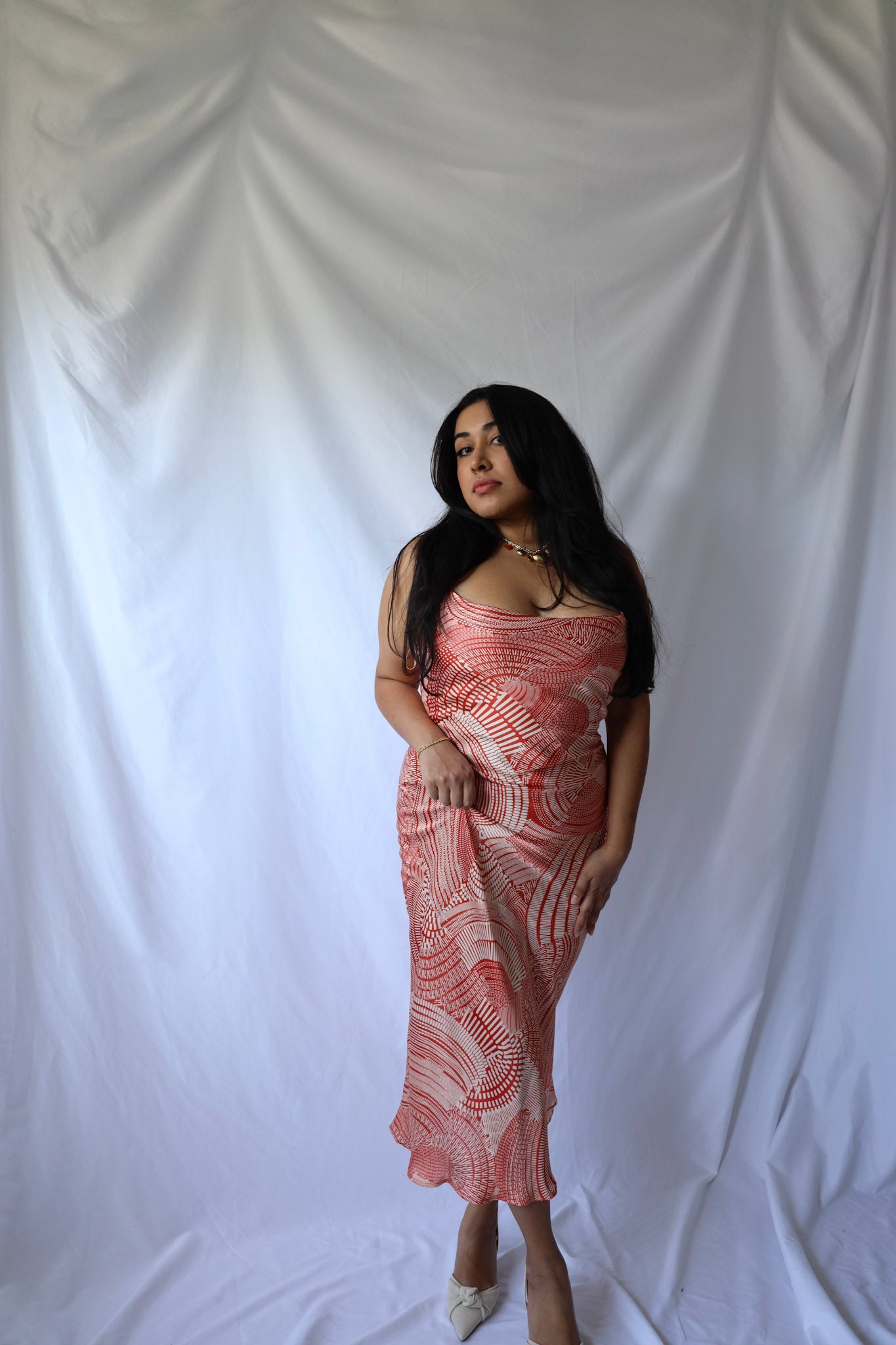Get ready to steal the spotlight in our Red Patterned Criss Cross Midi Dress! The corset style back and lace tie not only flatters your figure, but adds a touch of playful sophistication. Perfect for any wedding guest, this dress is also great for summer adventures or fancy dinners. Don't miss out on style and ease!