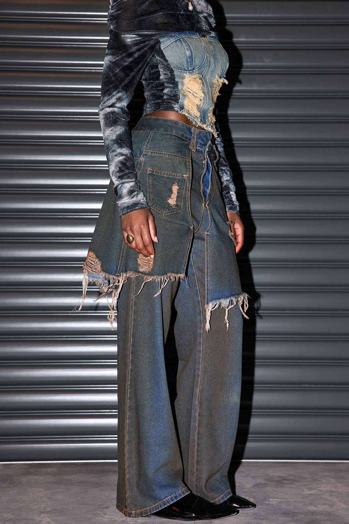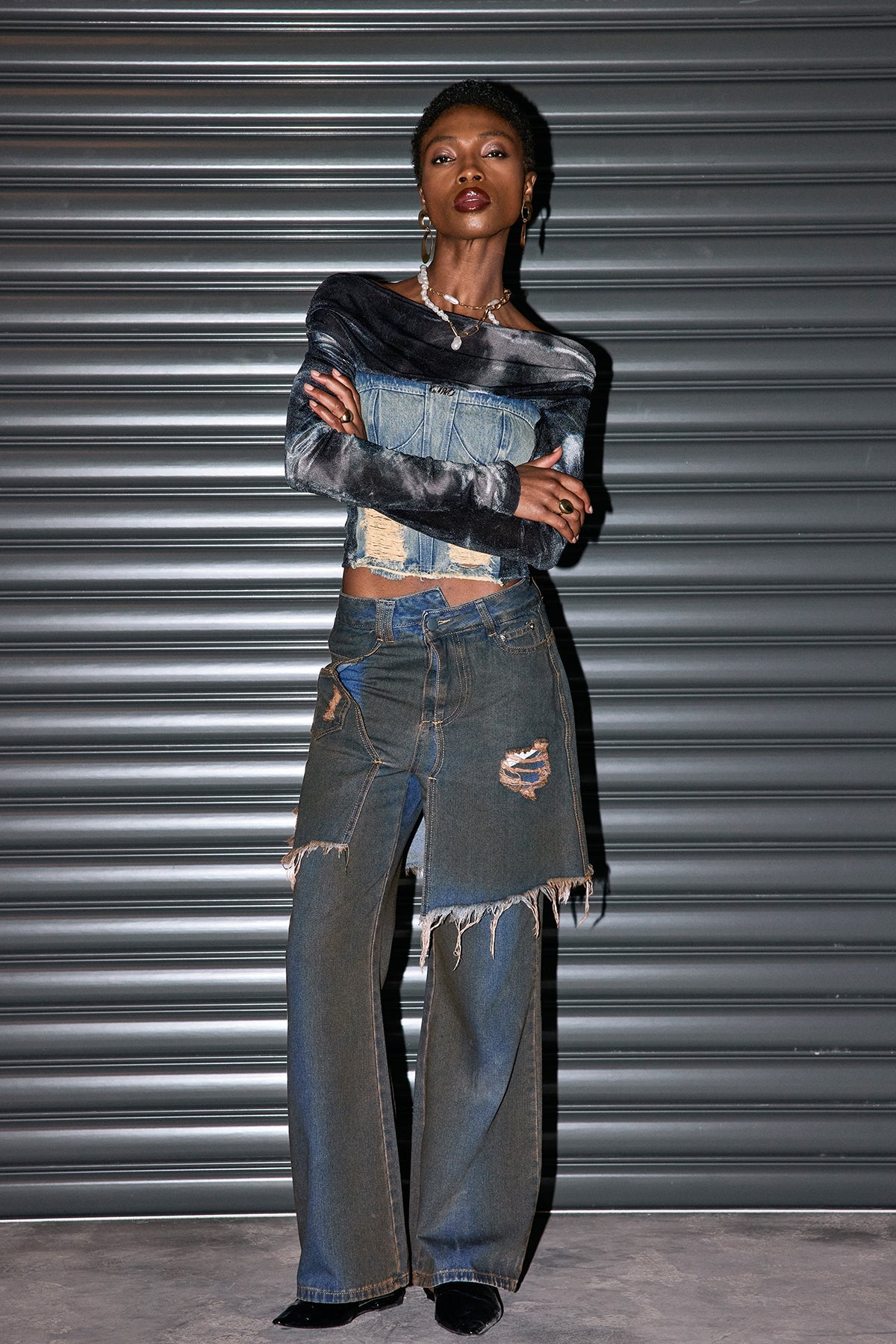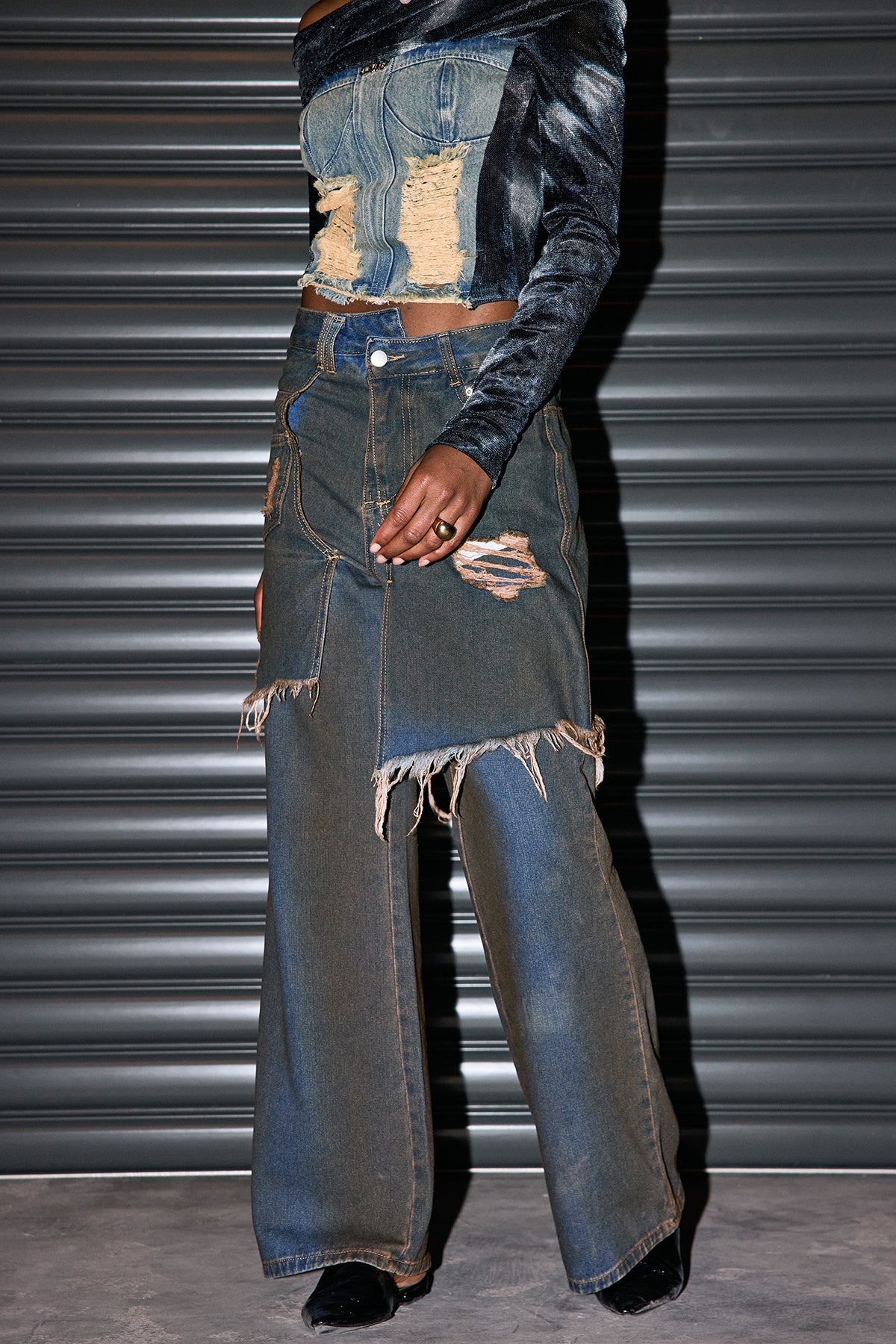 Expertly crafted with a unique design and edgy asymmetric fringe, these jeans from Mishka are a must-have for any fashion-forward wardrobe. Made from high-quality denim, these jeans offer both style and comfort for a versatile and trendy look. Elevate your denim game with Mishka's Patchwork Asymmetric Fringe Jeans.