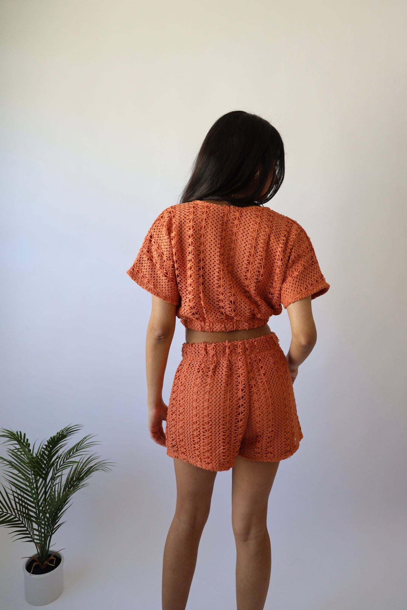 Get ready to turn heads this vacation with our Orange Cropped Crochet Top! Perfect for the resort or a spring/summer day, this top pairs beautifully with our matching shorts (sold separately). Get the complete look today!
