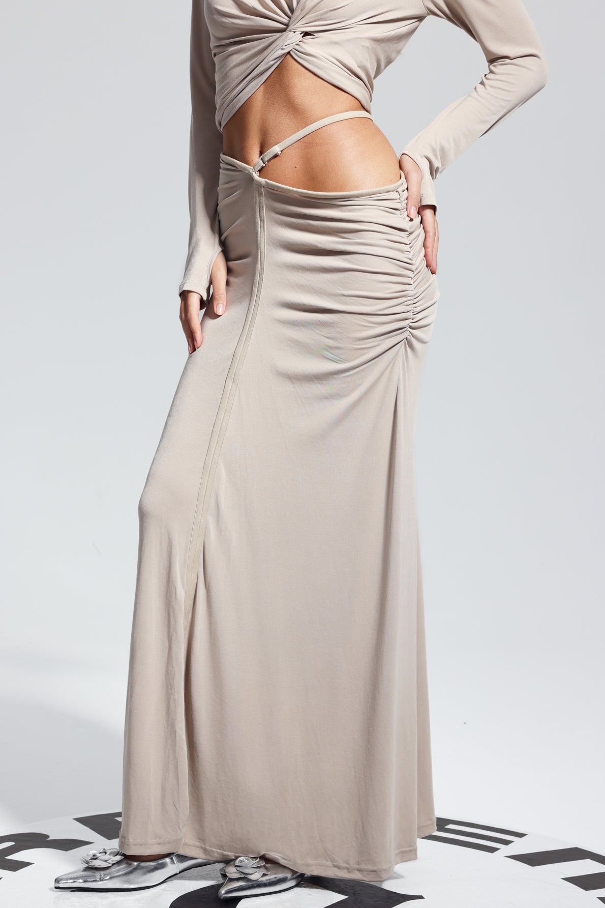 Padget Ruch Cutout Bodycon Skirt In Apricot