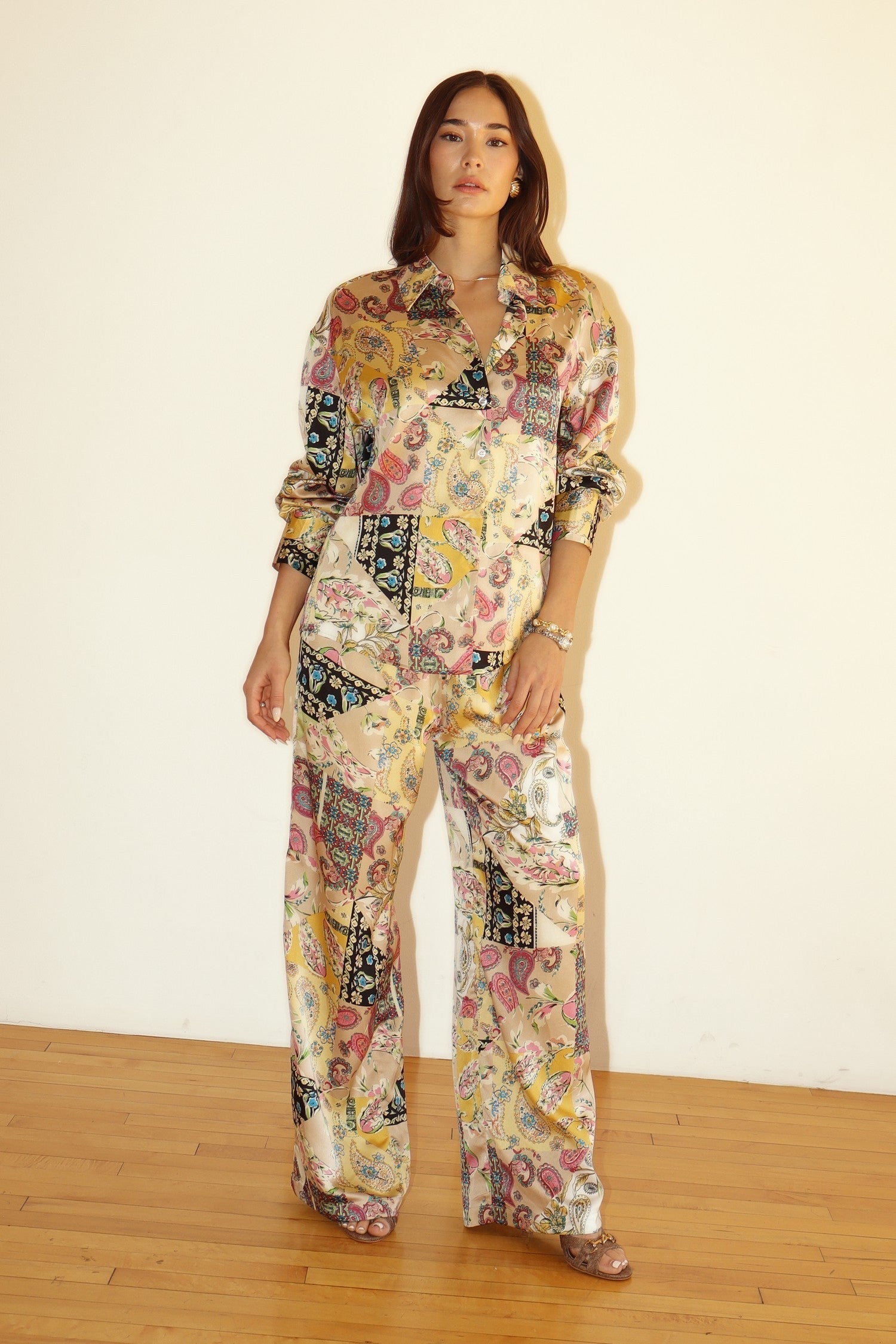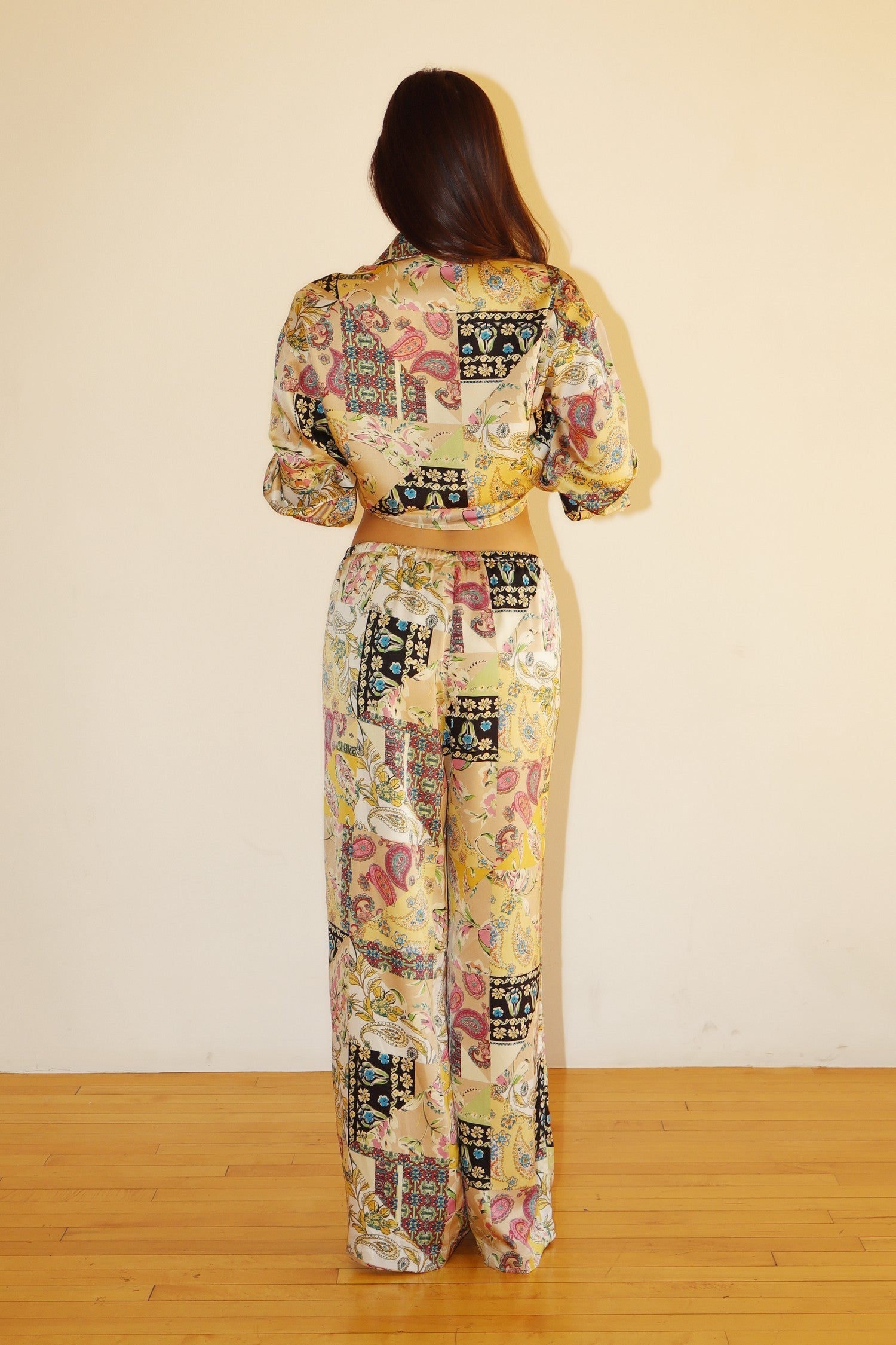 our suitcase staple for the ultimate Euro summer escape 🇮🇹 The Riviera Pants feature a high-rise fit, fluid wide-leg silhouette, and luxe satin finish that glides with every step. Designed in a sun-drenched palette of mixed paisley prints, they’re bold, breezy, and ready to turn heads from Positano to the piazza.