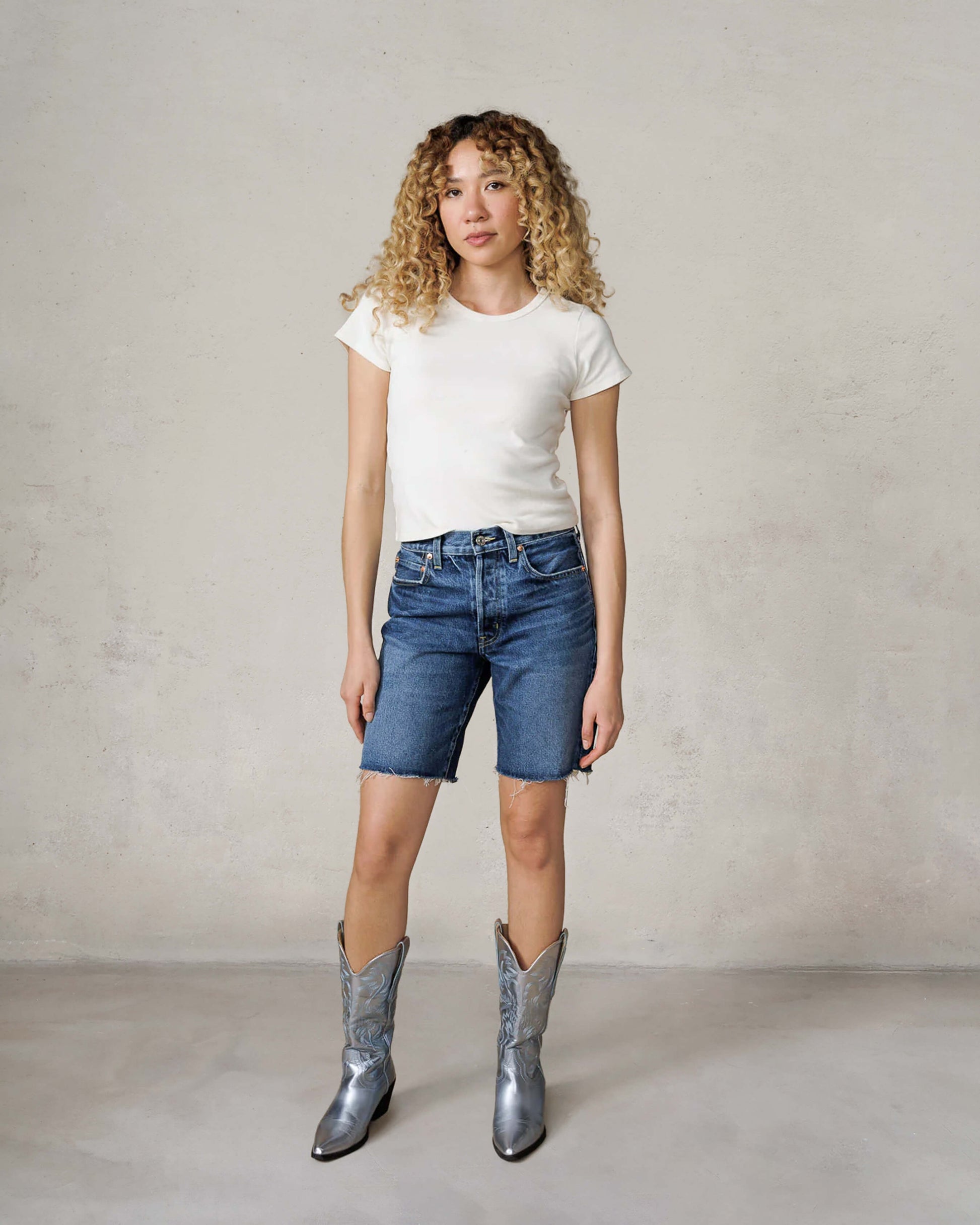 The warm-weather companion that embodies laid-back luxury. With unique wash and distressed details that feel authentically broken-in, these bermudas fall just above the knee while channeling effortless ease through mid-low rise and relaxed fit.