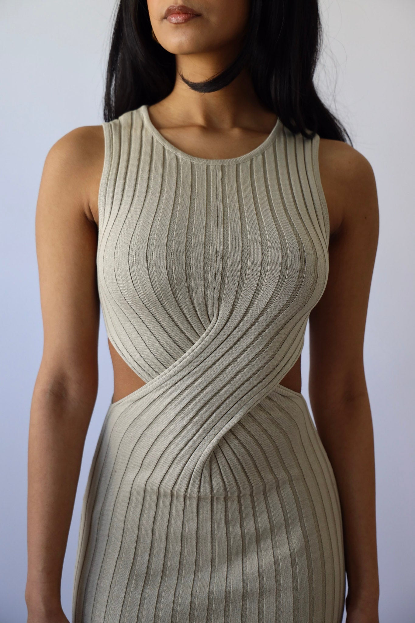 Get ready to slay in this Khaki Waist Cut Ribbed Knit Dress. The ribbed knit material hugs your curves, while the criss cross detail and waist cut out add a touch of sultry to this playful dress. Sleeveless and mid-maxi length make it perfect for any occasion. (Warning: May cause excessive confidence.)